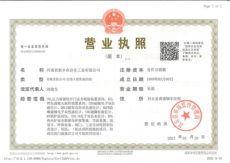 河南省新鄉(xiāng)市啟東工業(yè)有限公司始建于1987年,是專注研發(fā)、生產(chǎn)自動(dòng)化儀器儀表(主要與壓力容器、鍋爐等容器配套使用)的廠家。主要產(chǎn)品有液位計(jì)(磁敏雙色型、磁翻柱型等)系列、烤包器熄火聯(lián)控裝置系列、壓力容器快開(kāi)門安全聯(lián)鎖保護(hù)裝置系列、鍋爐報(bào)警器系列。二十多年來(lái),公司產(chǎn)品暢銷國(guó)內(nèi)并遠(yuǎn)銷俄羅斯、蒙古與東南亞,深得廣大用戶的信賴和好評(píng)。我們多年來(lái)致力于自動(dòng)化儀器儀表的研制生產(chǎn),公司現(xiàn)具有完善的生產(chǎn)、試驗(yàn)、檢測(cè)手段和設(shè)備。科技創(chuàng)新、誠(chéng)信服務(wù),是我們不變的經(jīng)營(yíng)理念,我們將以強(qiáng)有力的技術(shù)支持及售后竭誠(chéng)為客戶提供良好的服務(wù)。  2012年我公司成功研發(fā)了KCL系列烤包器熄火聯(lián)控裝置,并于2013年2月2日榮獲中華人民共和國(guó)國(guó)家知識(shí)產(chǎn)權(quán)局辦法的《實(shí)用新型**證書(shū)》<**號(hào):2021202257735>該產(chǎn)品廣泛應(yīng)用于唐鋼等大型鋼鐵企業(yè),為烤包器安全作業(yè)提供了有力的保障。  2002年我公司成功研發(fā)磁敏電子雙色液位計(jì)獨(dú)特的高亮度LED紅綠雙色顯示,獲得了專家的首肯和用戶的一致好評(píng)。在此基礎(chǔ)上我公司研發(fā)人員十年磨一劍,致力于XQFB-1防爆型磁敏雙色液位計(jì)的研發(fā),于2013年12月27日由國(guó)家防爆電器產(chǎn)品質(zhì)量監(jiān)督檢驗(yàn)中心檢驗(yàn)合格并頒發(fā)防爆合格證書(shū)<編號(hào):cnex19.0883>。該產(chǎn)品性能得到了充分的發(fā)揮,廣泛應(yīng)用于含有Ⅱ類A·B級(jí)T1-T4組可燃?xì)怏w或蒸汽與空氣混合形成的爆炸性混合物的0區(qū)、1區(qū)危險(xiǎn)場(chǎng)所。連接用戶DCS或PLC系統(tǒng)實(shí)現(xiàn)遠(yuǎn)距離集中顯示和控制,從而實(shí)現(xiàn)節(jié)能、數(shù)字化管理。為用戶增加了一定的經(jīng)濟(jì)效益和社會(huì)效益,。2014年公司成功申請(qǐng)了夢(mèng)潤(rùn)儀表的logo,新的品牌新的形象,夢(mèng)潤(rùn)儀表是啟東的LOGO, 歡迎新老用戶前來(lái)洽談合作。  我們一如既往地注重科研的投入,憑借產(chǎn)品的不斷更新、加大科技含量,進(jìn)一步拓展市場(chǎng)。我們相信品質(zhì)成就未來(lái),以過(guò)硬質(zhì)量、優(yōu)惠價(jià)格、完善的售后服務(wù)熱忱歡迎廣大客戶來(lái)我司視察指導(dǎo)、洽談業(yè)務(wù);精誠(chéng)合作,共創(chuàng)輝煌!